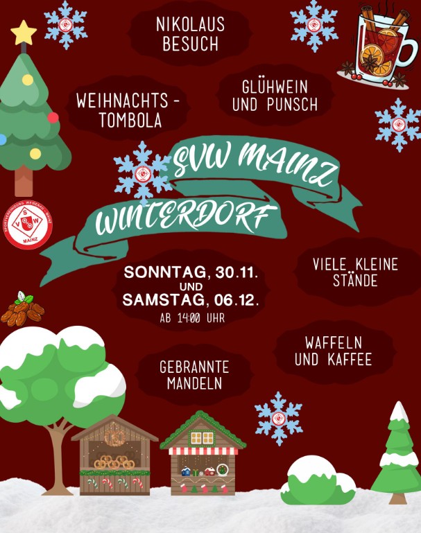 Am Sonntag, den 30. November sowie Samstag, den 06. Dezember jeweils ab 14 Uhr findet am SVW Sportplatz das diesjährige Winterdorf statt mit
